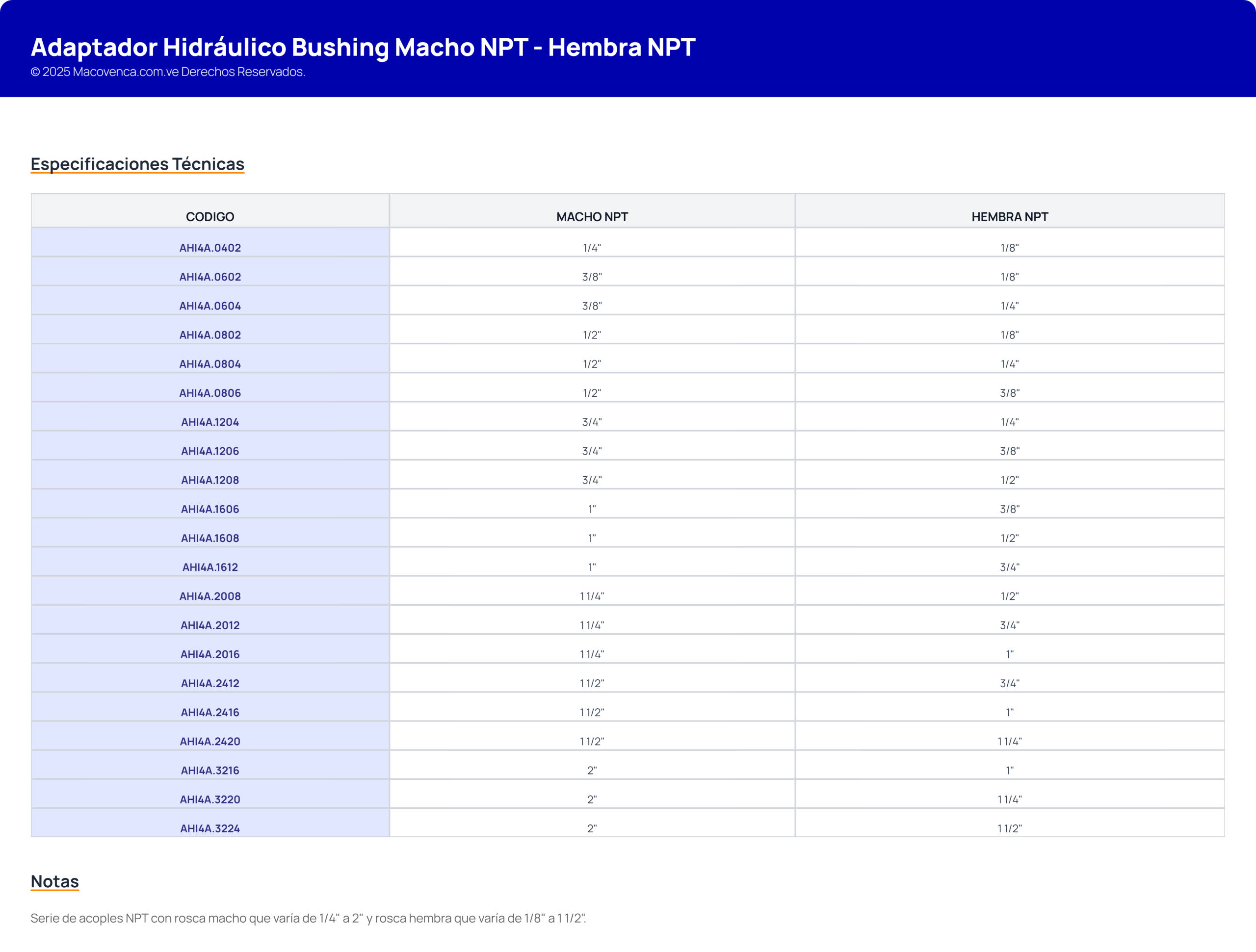 Adaptador Hidráulico Bushing Macho NPT – Hembra NPT