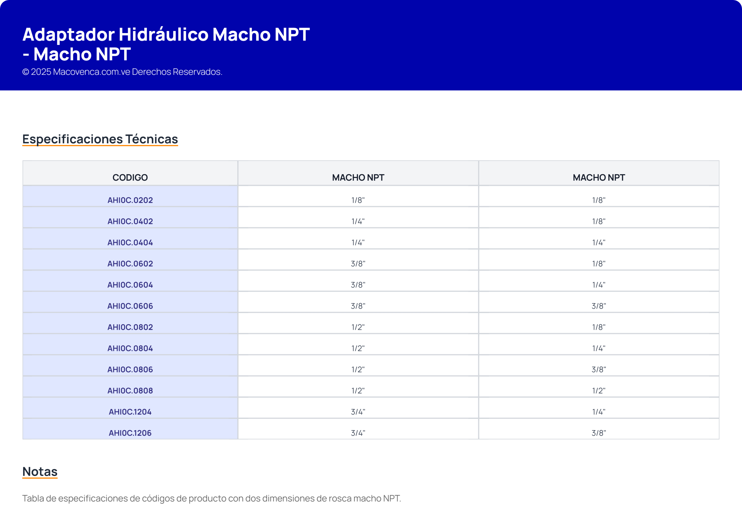 Adaptador Hidráulico Macho NPT – Macho NPT