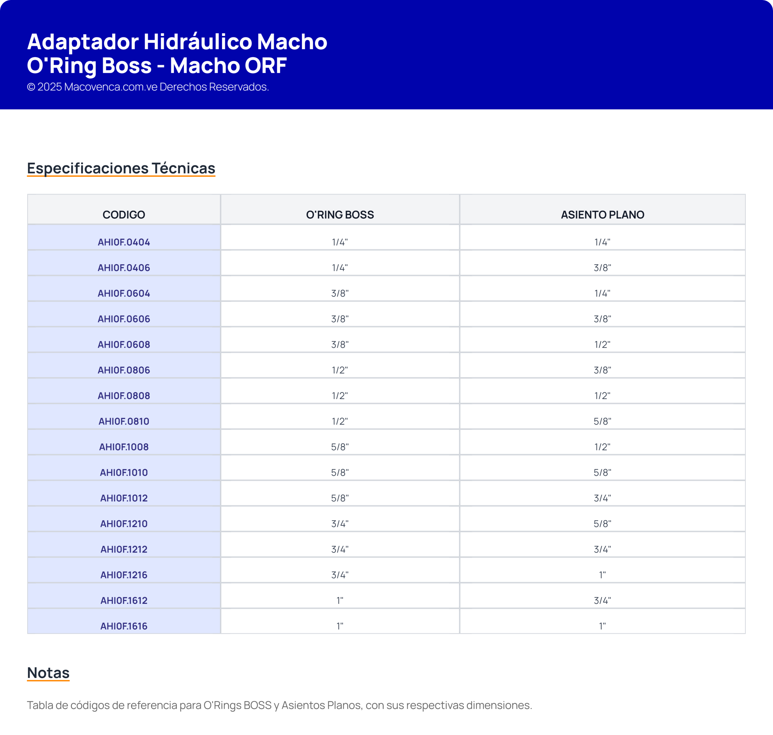 Adaptador Hidráulico Macho O’Ring Boss – Macho ORF