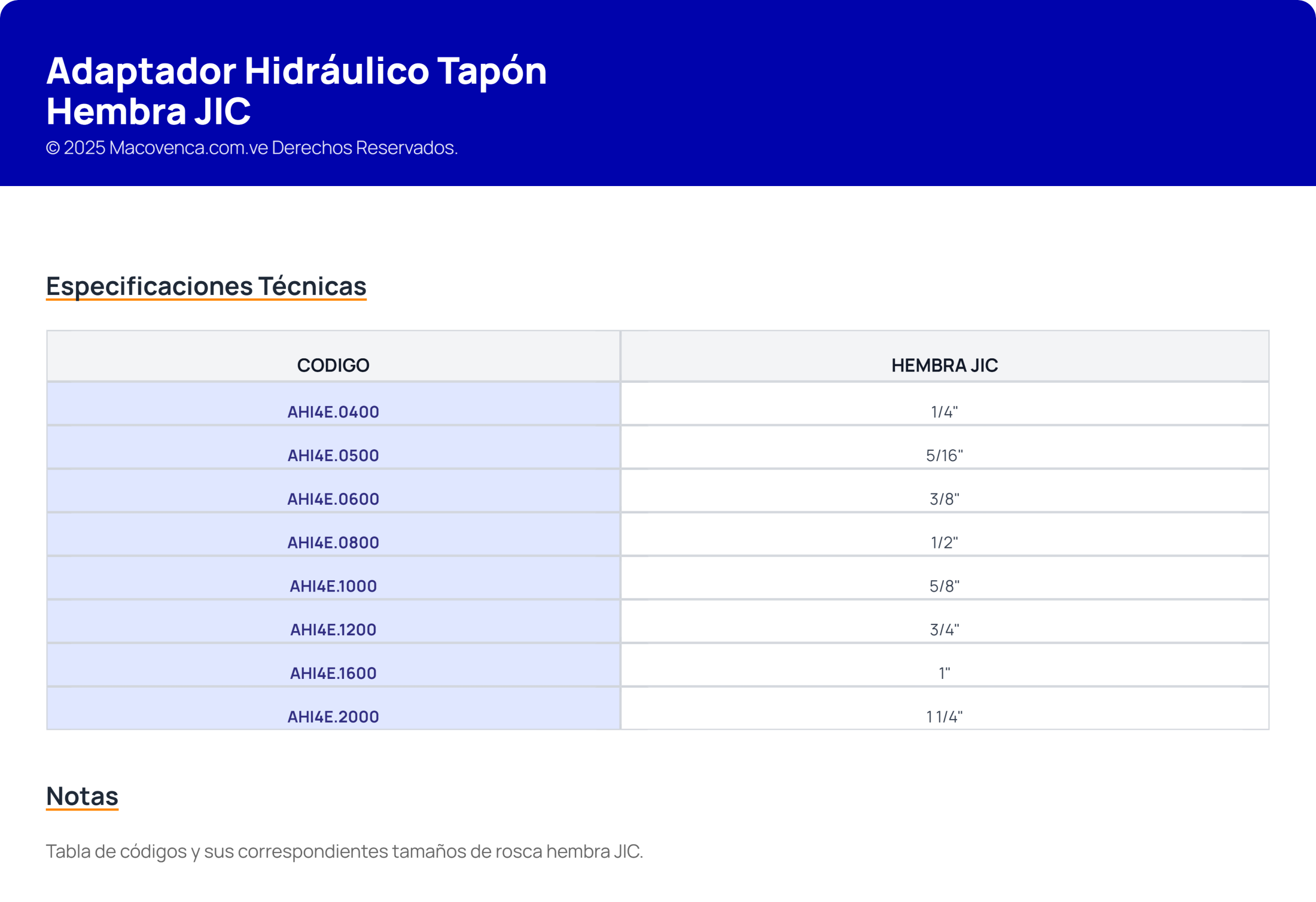 Adaptador Hidráulico Tapón Hembra JIC