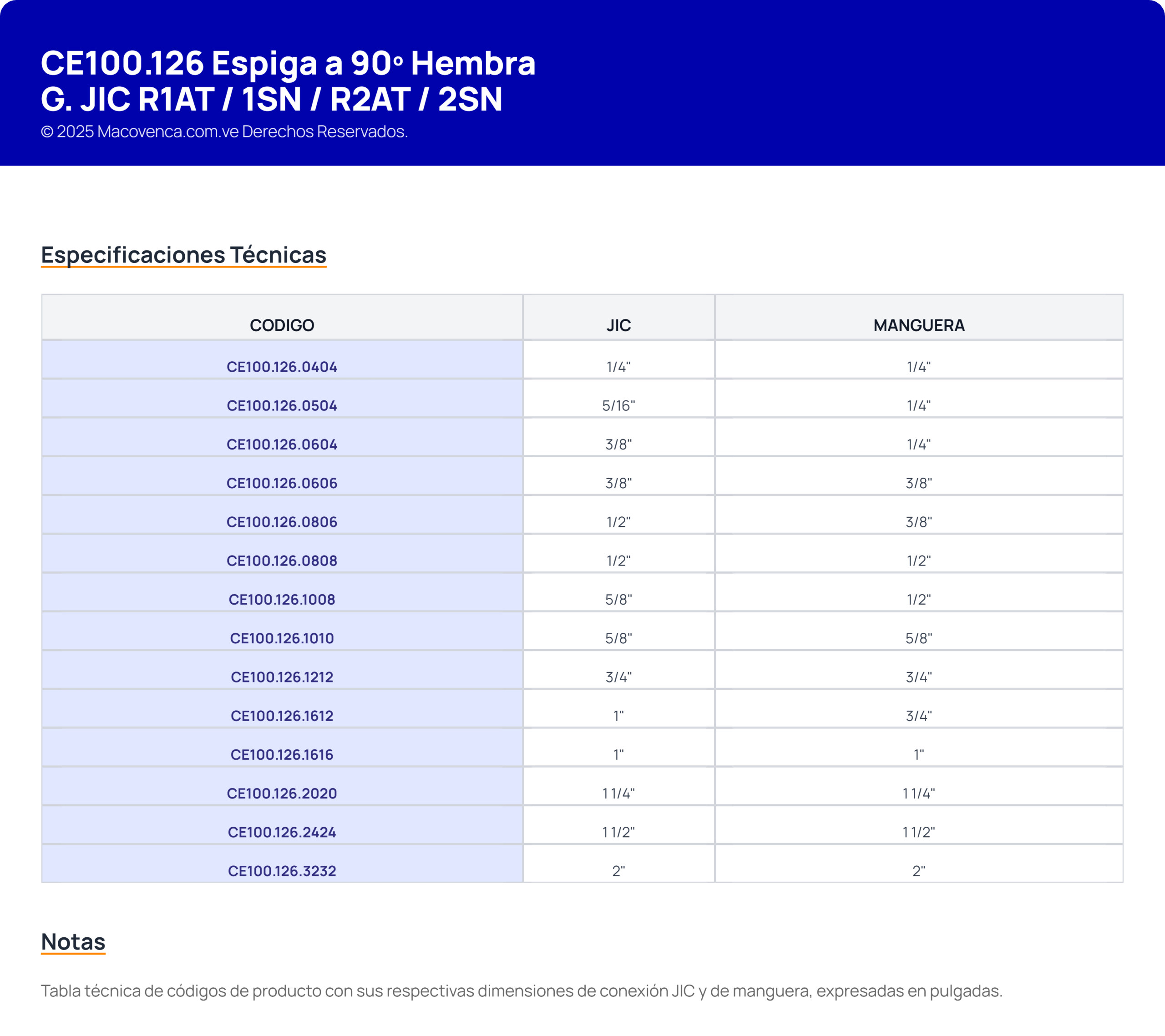 CE100.126 Espiga a 90º Hembra G. JIC R1AT / 1SN / R2AT / 2SN