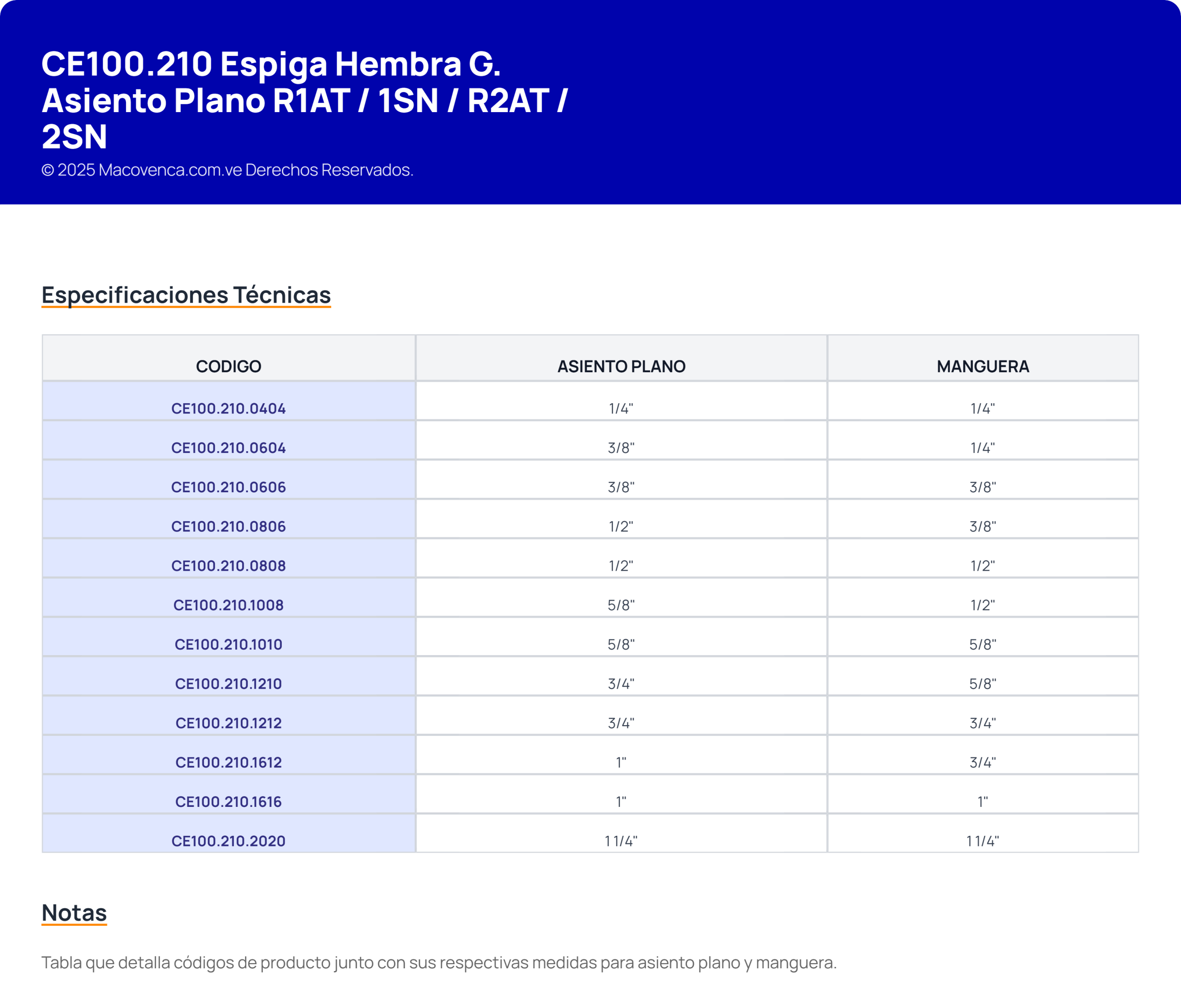 Terminal (espiga) prensable con rosca hembra giratoria de asiento plano (Flat Face), para mangueras R1AT/1SN/R2AT/2SN.