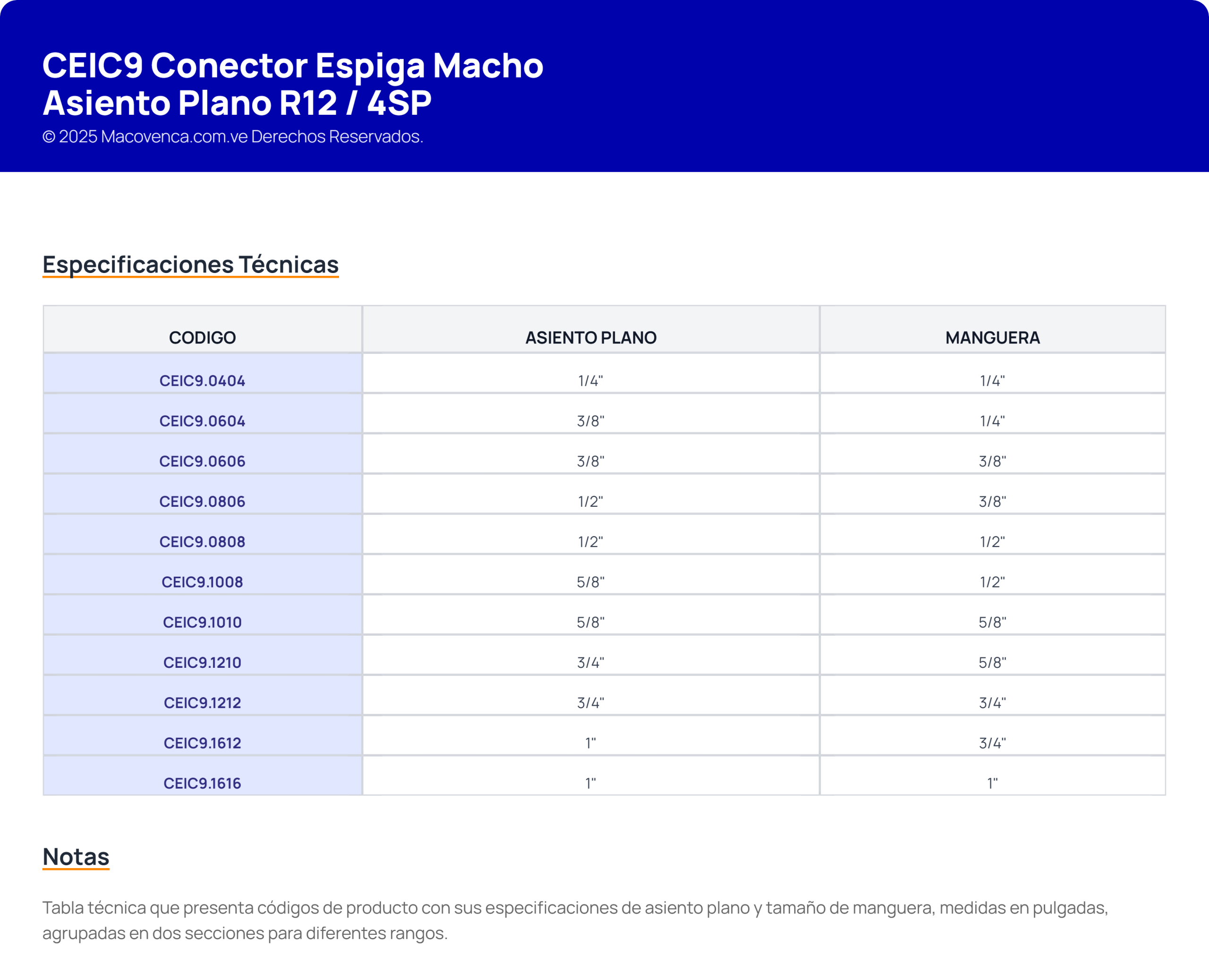 CEIC9 Conector Espiga Macho Asiento Plano R12 / 4SP