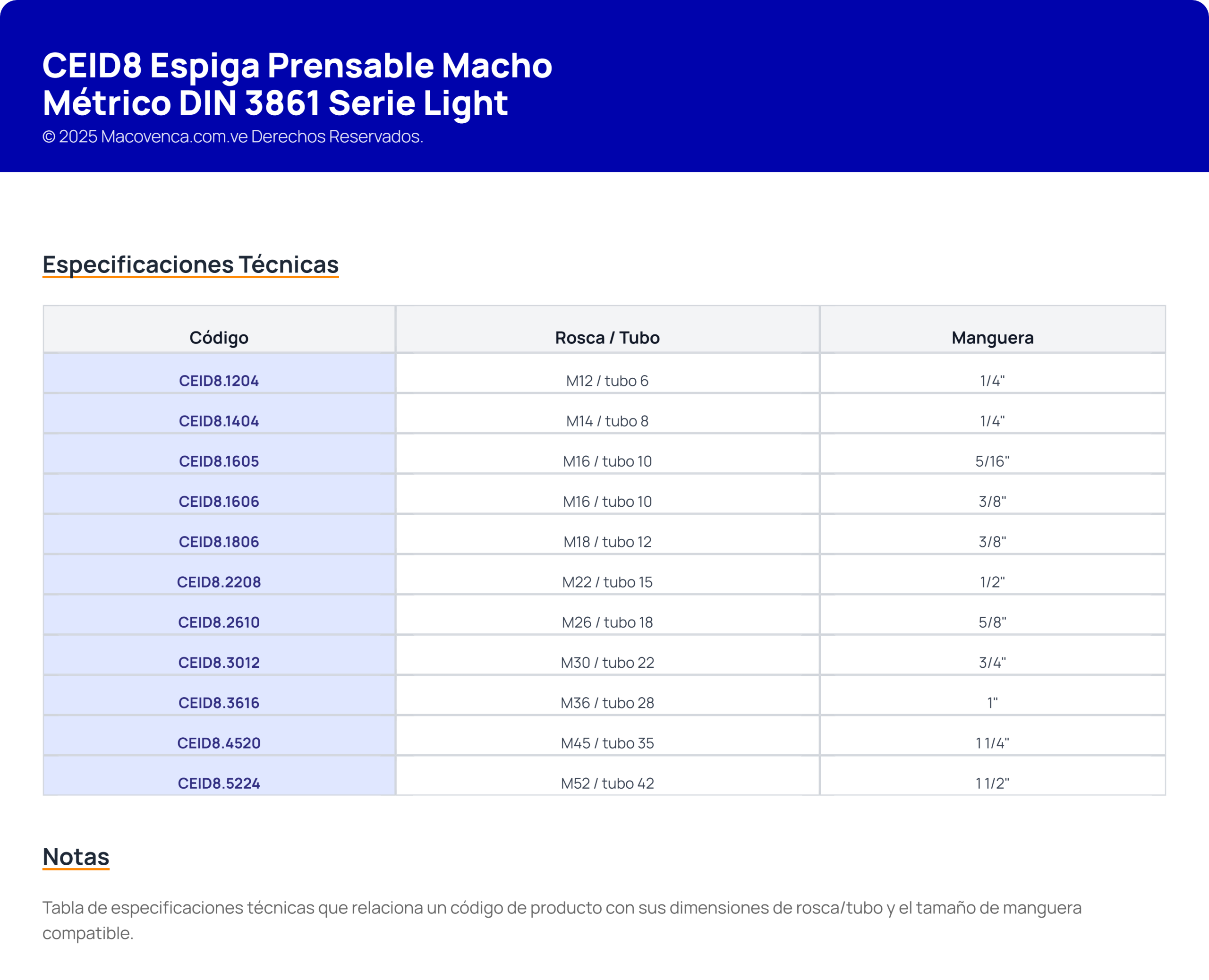 CEID8 Espiga Prensable Macho Métrico DIN 3861 Serie Light