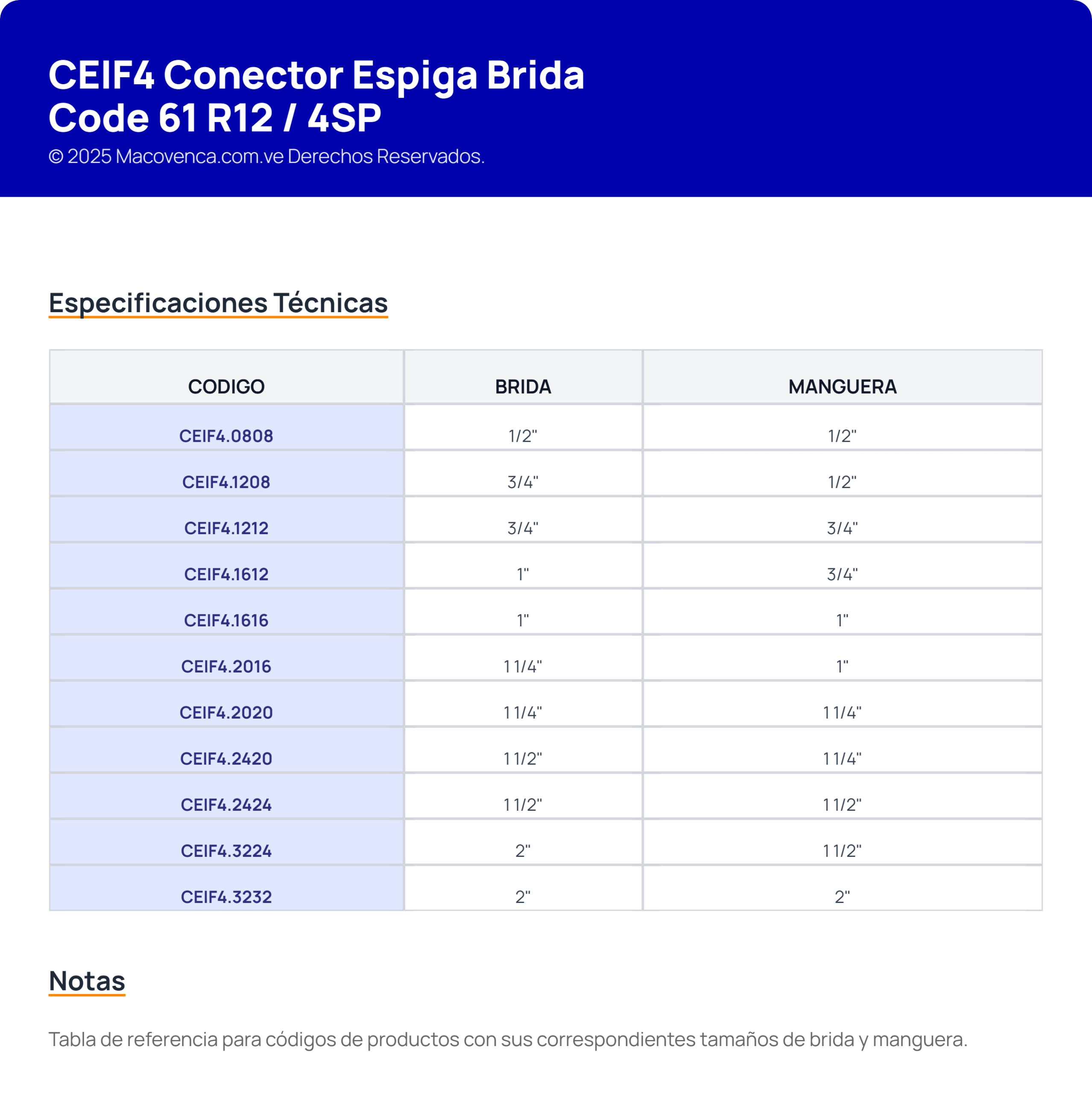 CEIF4 Conector Espiga Brida Code 61 R12 / 4SP