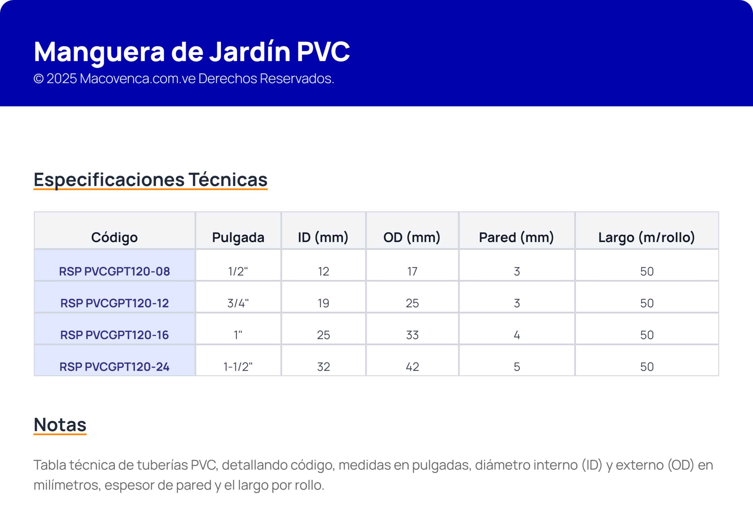 Manguera de PVC reforzada con poliéster para jardinería, limpieza de autos, riego y aplicaciones comunitarias.
