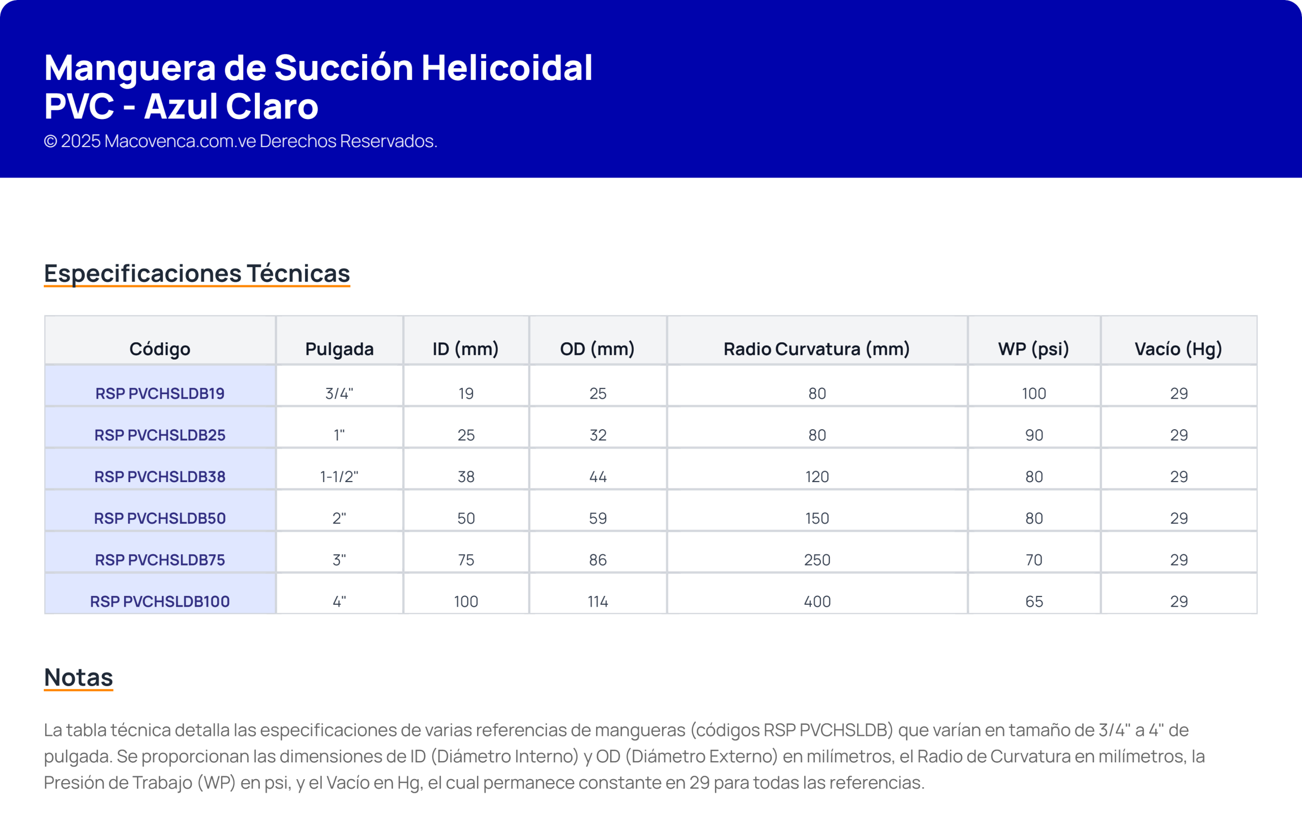 Manguera de Succión Helicoidal PVC – Azul Claro