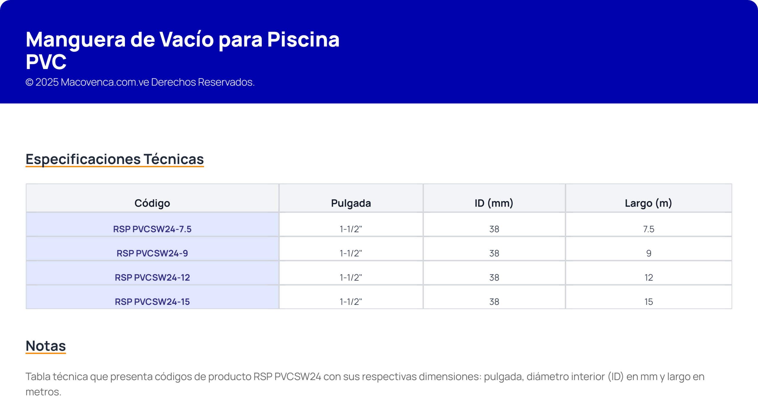 Manguera de Vacío para Piscina PVC